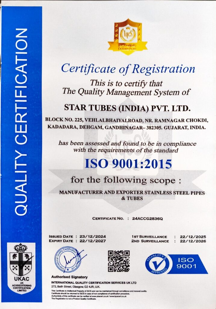 Recognized for our robust quality management system in manufacturing and exporting stainless steel pipes & tubes.