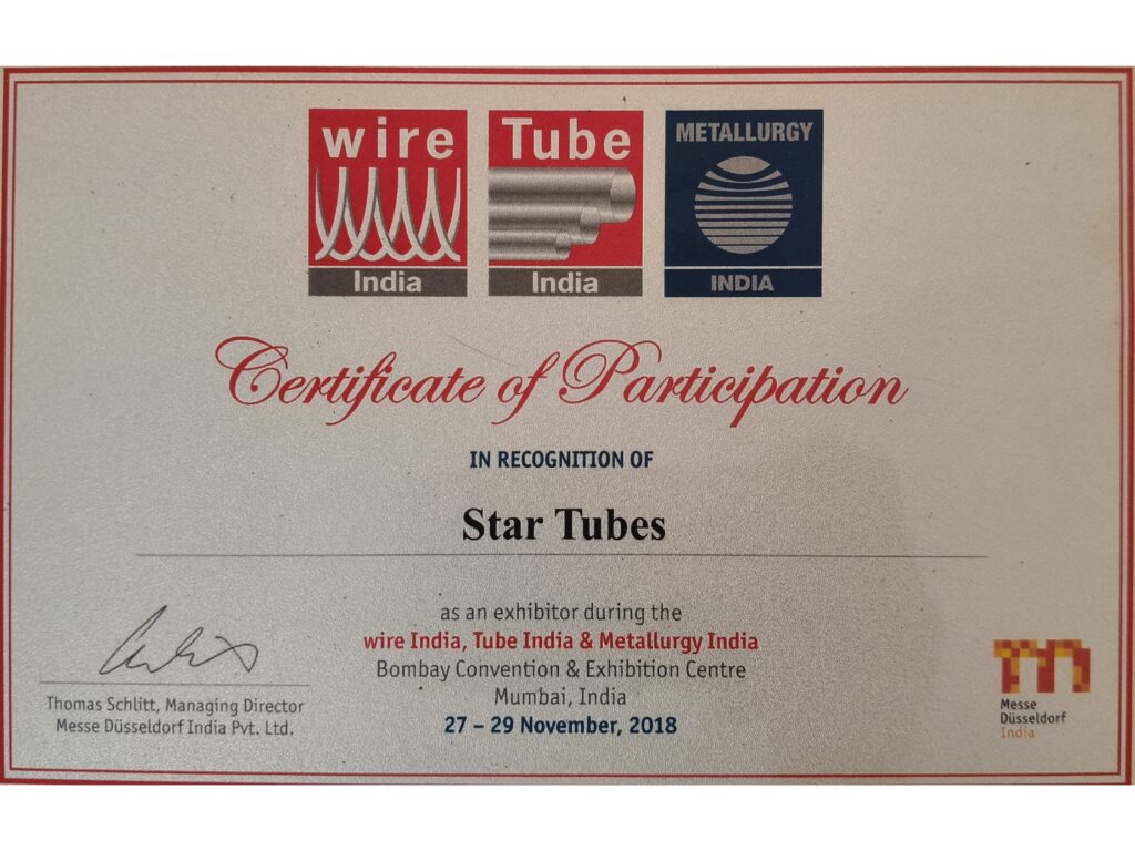 Honored at Wire India, Tube India & Metallurgy India Exhibition for our contribution and presence in the international market.